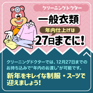 一般衣類の年内にお返し可能な最終受付日のお知らせ